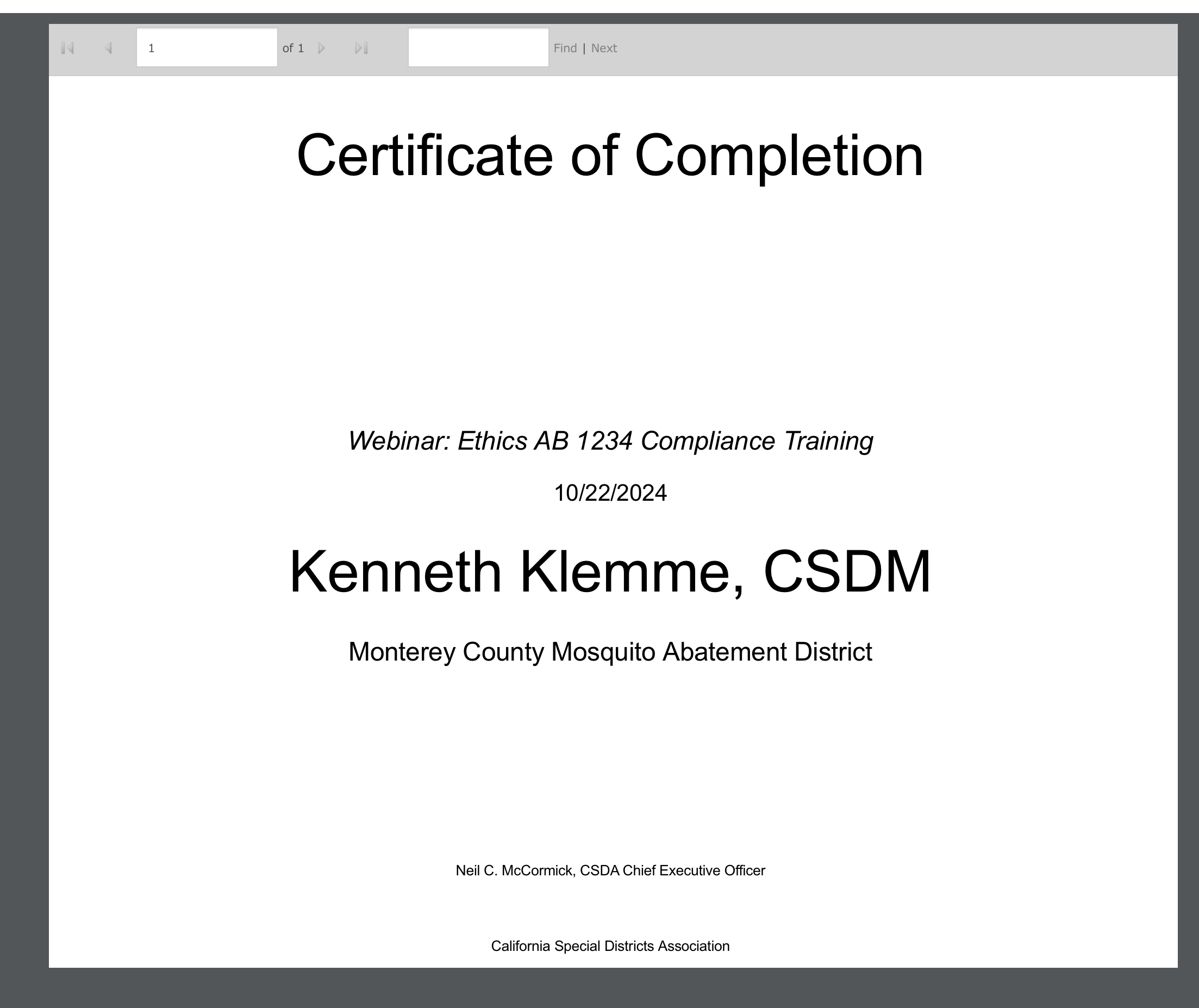 Ken’s dedication to governance is reflected in his extensive service on boards across the state. He currently serves as Board Chair of the Soledad Mission Recreation District, has held four terms as President of the Mosquito and Vector Control Association of California, and serves as Secretary of the local Special District Association chapter. He is also an executive member of the statewide Vector Control Joint Powers Authority. His Special District Administrator certification underscores his commitment to professional excellence and advancing the mission of public-serving organizations.